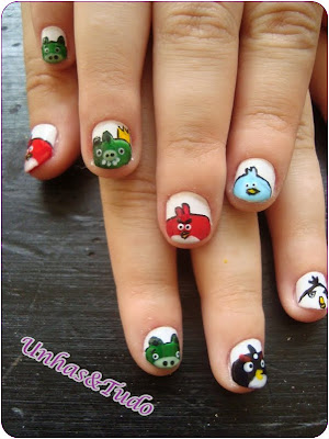Gostei das nail art aqui… a primeira foi a que mais gostei. A dos Angry Birds para as gurias é perfeito. Eu gosto muito do jogo, mas, pra mim, grandinha, dá não…