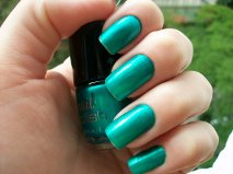 Eu estou com o Torquoise, da H&M. É um verde metálico lindo e fácil de passar – com uma camadinha já ficaria bom, mas eu passei 2 para garantir. Fora que o vidrinho em miniatura é uma graça, né?