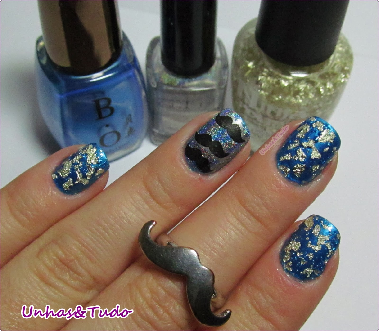 Passei o Silver,Glitter Gal no anelar e o He Went to Jared, Ninja Polish nos outros, conforme a dica das meninas lá na fanpage. E no anelar alguns bigodinhos com a placa Apipila 03. Mas, sei lá porque não me agradou muito, no final das contas tirei no dia seguinte.